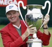 Mon, 1st Dec 2003 Ernie Els - (South Africa) Omega European Masters Crans-sur-Sierre - Crans Montana - Switzerland - 4th to 7th September, 2003 Ernie Els shot a final round 65 for a six-stroke victory in the Omega European Masters at Crans-sur-Sierre in Switzerland. Ernie Els had accumulated at that stage 430.10 World Ranking points in 2003 and more than any other golfer in the world. He narrowed the gap between himself and World No.1 Tiger Woods to 6.77 points. Ernie Els World Ranking victories this year include the Mercedes Championships (54 first place points), The Sony Open in Hawaii (58), The Heineken Classic (30), The Johnnie Walker Classic (44), The Barclays Scottish Open (50) and this week's Omega European Masters (30). Runner-up Michael Campbell continued his good form since returning to the European Tour and became World No.44. |