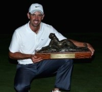 Tue, 1st Jan 2013 Charl Schwartzel - (South Africa) Alfred Dunhill Championship Leopard Creek- Malelane - South Africa - 13th to 16 December, 2013 This magnificent 24 under win gave Charl Schwartzel his 8th European Tour title. A 12-shot victory places him in near competition with the remarkable record 15-shot win of Tiger Woods at the 2000 US Open. Not to be ignored is his 11-shot victory in Thailand the previous week. As only the second event in this season he is off to a great start in The Race to Dubai. Gregory Bourdy pressed him all the way until the final hole when he took a double-bogey seven, and letting Kristoffer Broberg move into second place with 12-shots under par. |