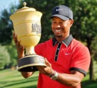 Fri, 1st Sep 2006 Tiger Woods - (USA) WGC - Bridgestone Invitational Firestone - Akron - Ohio - USA - 24th to 27th August, 2006 This time Tiger Woods from the USA was forced into a playoff with fellow American Stewart Cink before carrying off the Trophy in the Bridgestone Invitational in Ohio. Hot on their heels was another American Jim Furyk just the one stroke further back. |